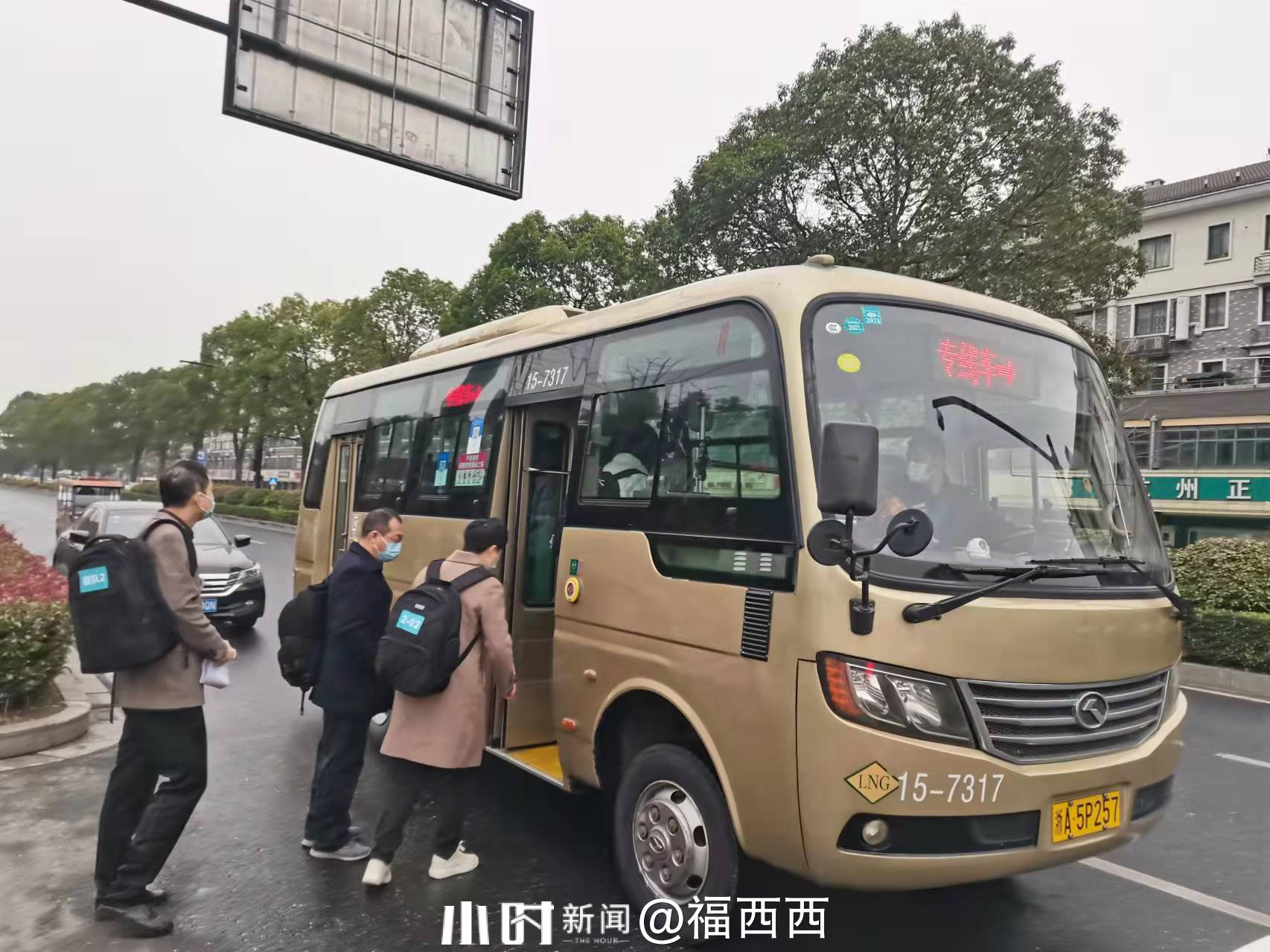 12月14日上午8时先锋队运送30名医务人员前往杭州萧山机场出租车服务基地及杭州市萧山区蜀山街道章潘桥村杭州地铁蜀山车辆段综合维修基地协助完成大规模核酸采样任务。