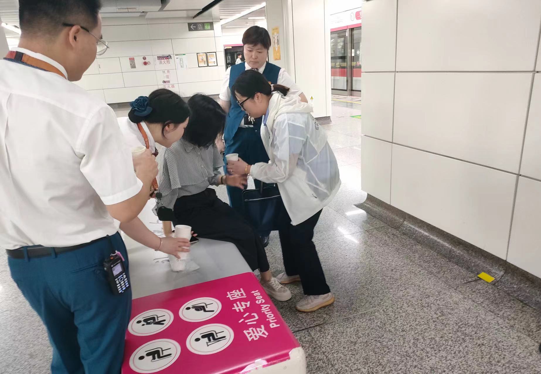 8点20分,正值地铁早高峰,范巧媚正在彭埠地铁站的座椅上等待换乘的4号线,当时这位女乘客正好与范巧媚背对背坐着,且已经出现身体不适、脸色发白的情况。