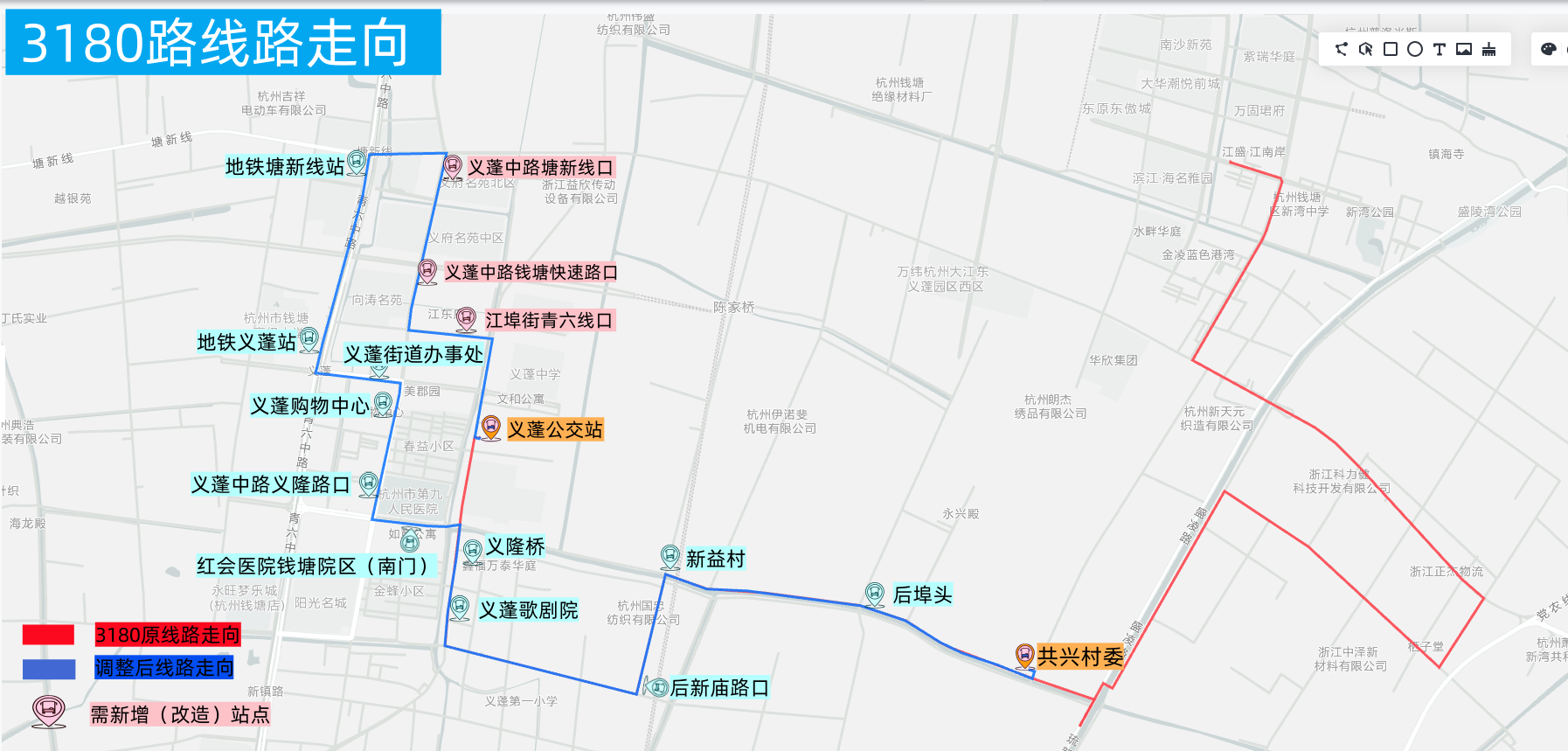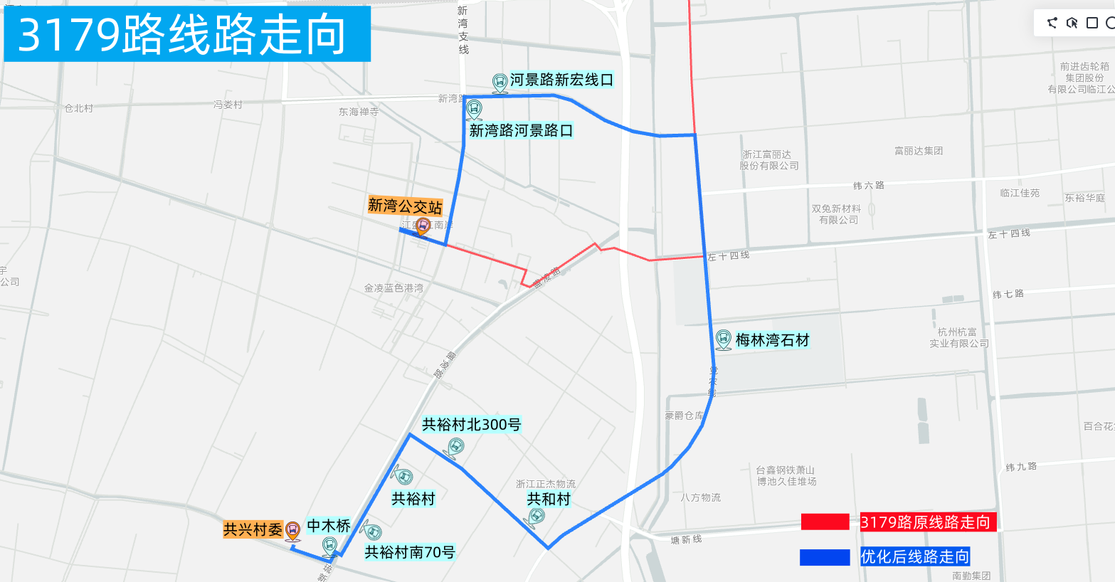 撤销站点:共兴村、共裕村南70号、共裕村、共和村北300号、共和村、共和村北、新湾新市场、三新村8对停靠站点。