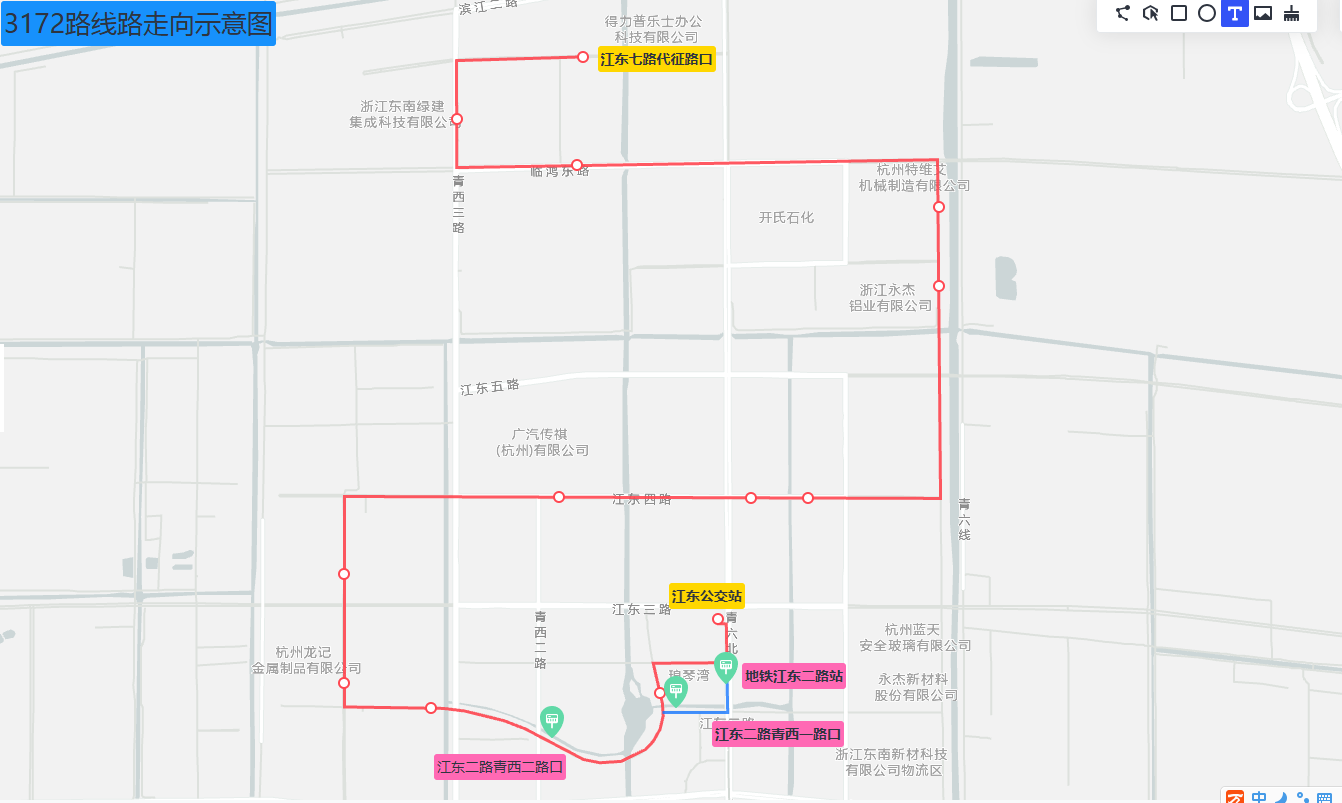增设站点:地铁江东二路站、江东二路青西一路口(下行)、江东二路青西二路口3对(只)停靠站点。