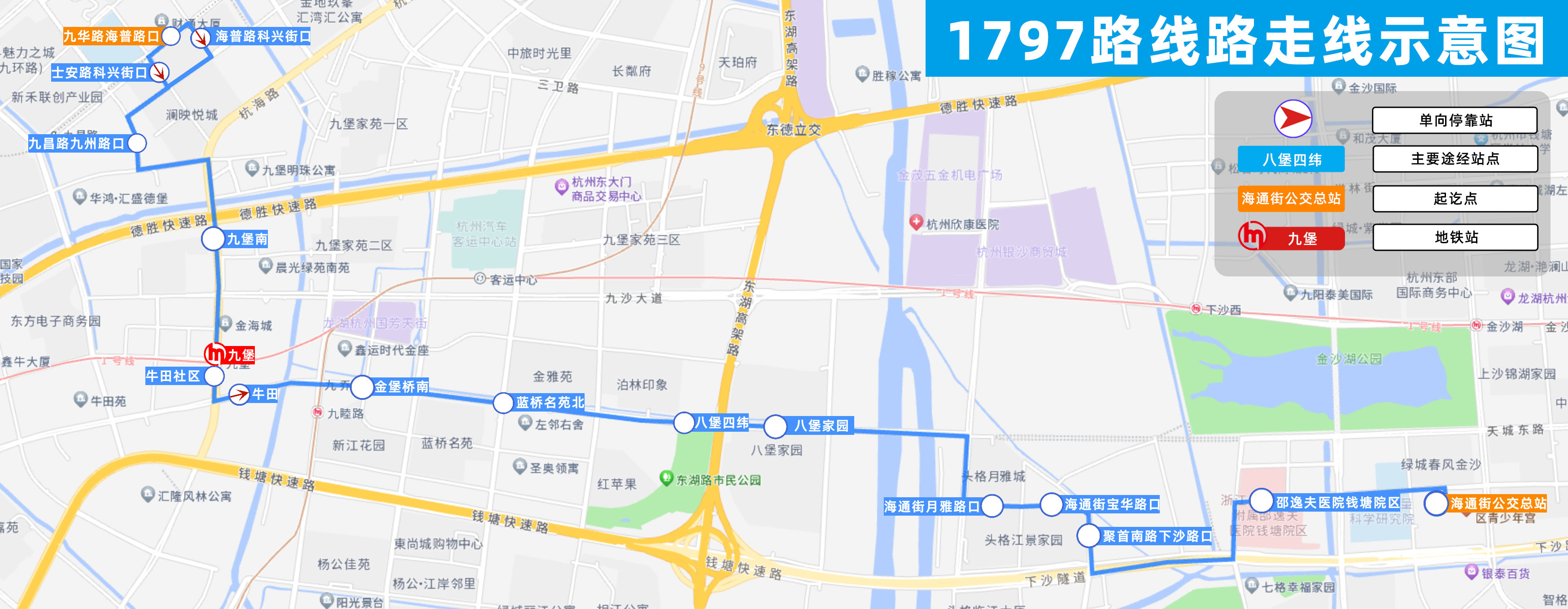 线路裁弯取直后,也使得1797路服务半径扩展至九乔街沿线多个住宅小区,包括八堡家园、泊林印象、金雅苑等,直接惠及周边数万居民日常出行。
