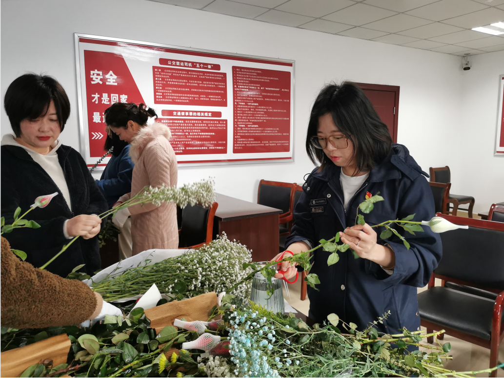 “三•八”妇女节来临之际,为丰富广大女职工的业余生活、陶冶情操,3月4日上午,钱塘公交工会开展了一场“与花相伴 绽放芳华”女职工插花活动。现场花艺老师讲解基本的花艺知识,介绍花材,接着进行剪裁示范、插花表演,女职工个个都跃跃欲试,通过自己双手制作插花作品,大家的脸上都洋溢着喜悦的笑容。